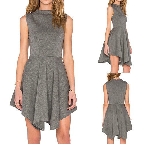 Solid color style,styled with sleeveless,round neck and an irregular hem,this dress is a must have for the