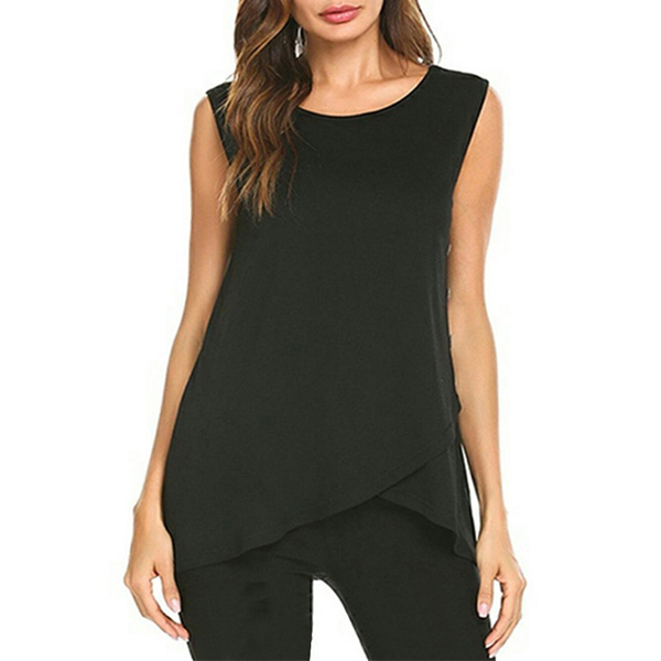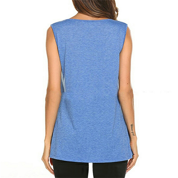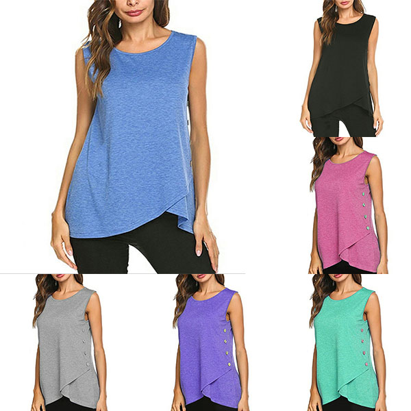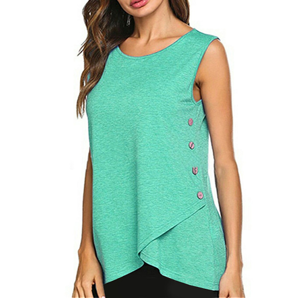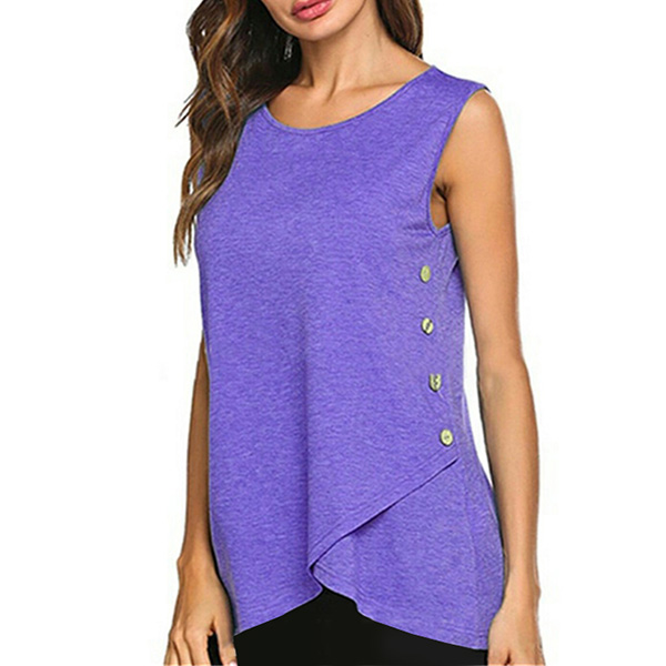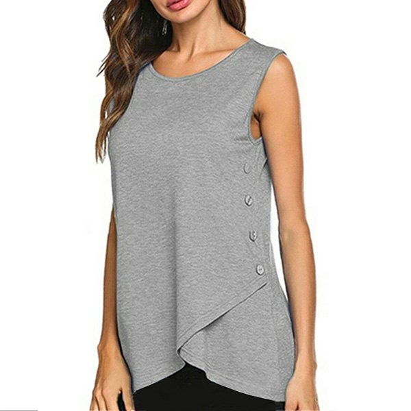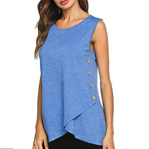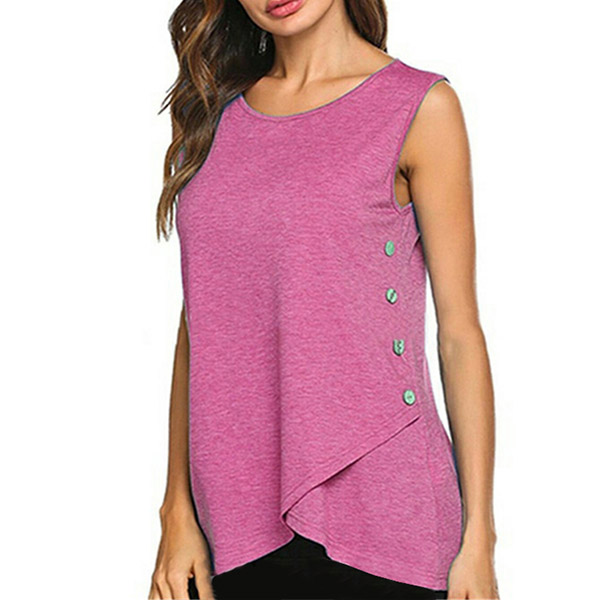 finished with sleeveless,round neck,irregular hem and side-button design,this t-shirt can be your perfect