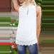 so appealing and feminine,while its sleeveless,round neck,breezy chiffon fabric and loose silhouette will give you a cool