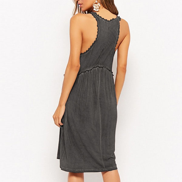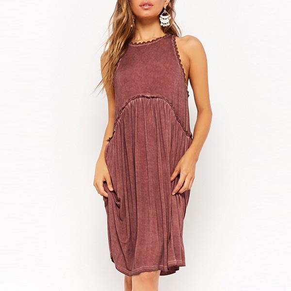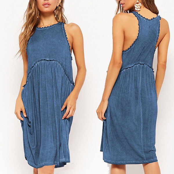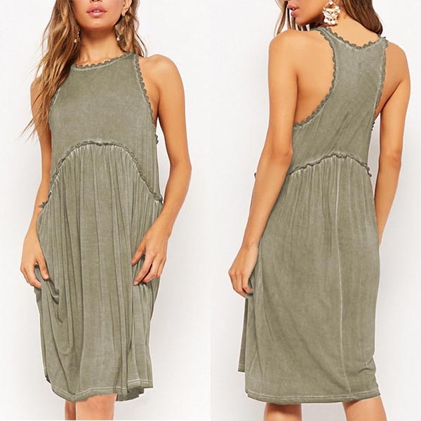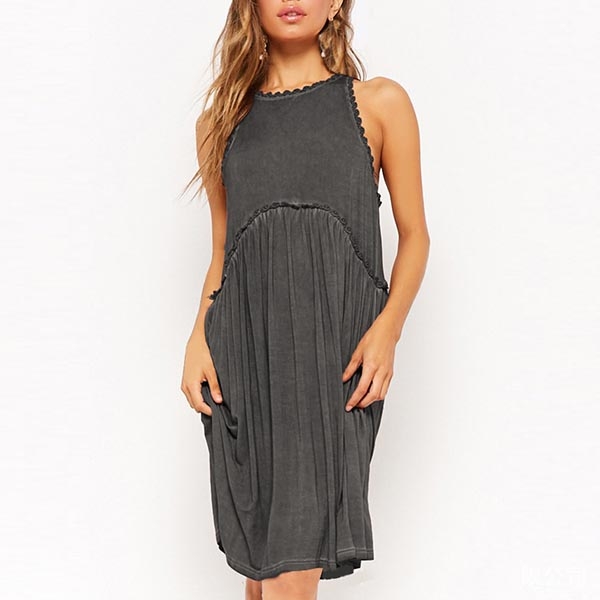 Coming with a solid color,finished with sleeveless,round neck and a loose silhouette design,