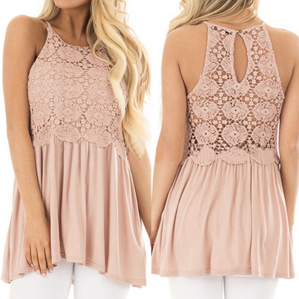 This tops comes with a sweet pink tone,with sleeveless and round neck design,which can offer you a