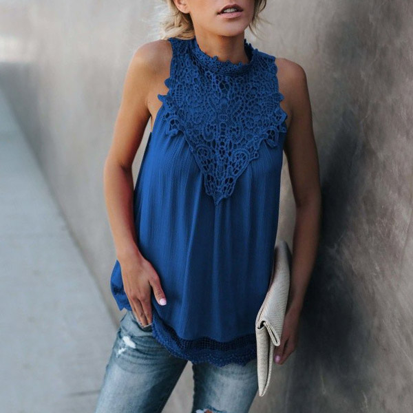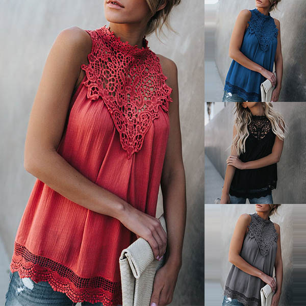 finished with sleeveless,round neck and a loose silhouette,simple and comfortable,while the lace