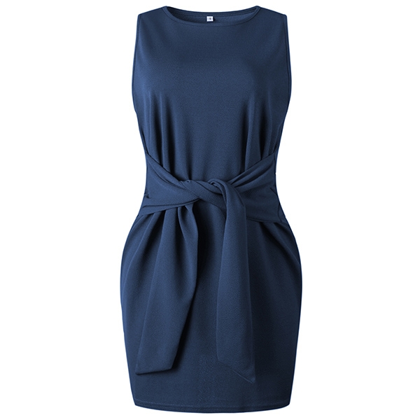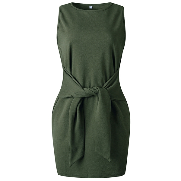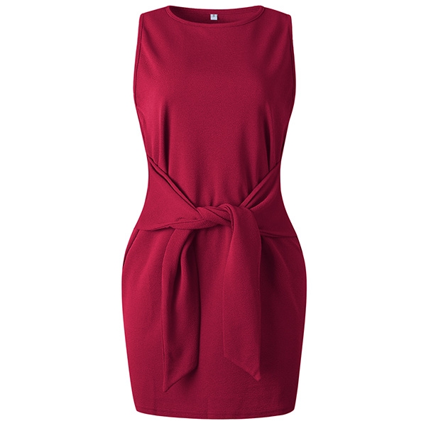 It features a solid color,finished with sleeveless,round neck and a clean silhouette,simple yet stylish.