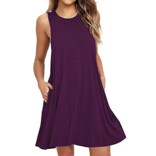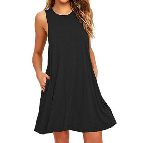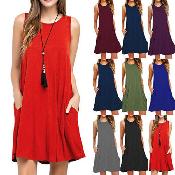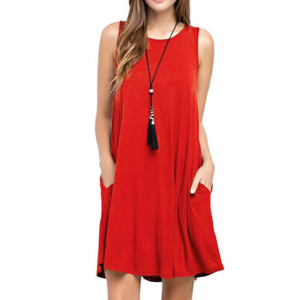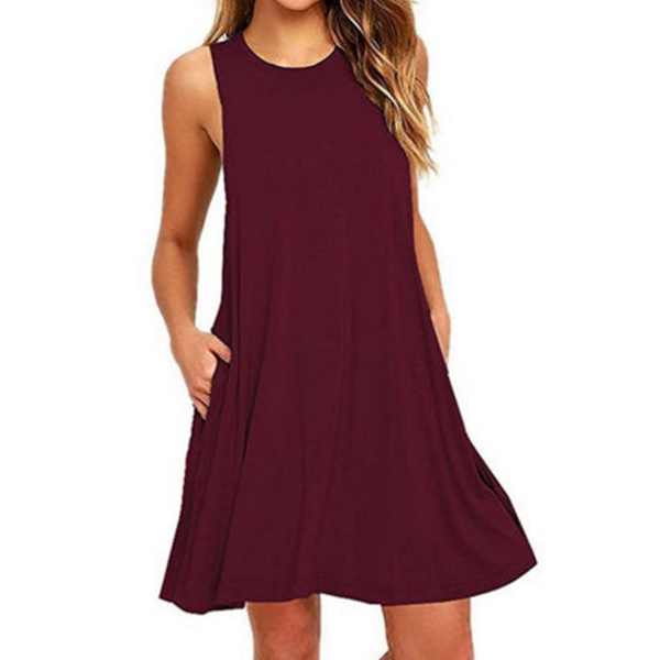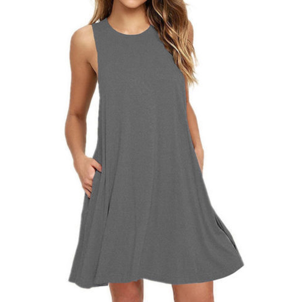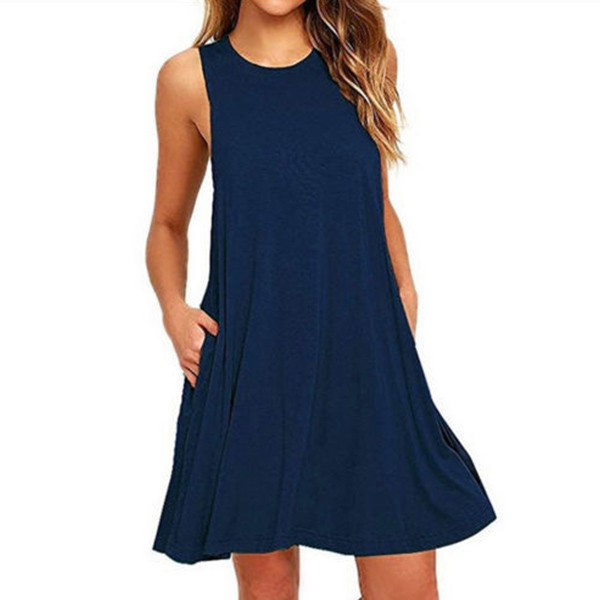 finished with sleeveless,round neck and a loose silhouette,this dress can offer you a comfortable day.