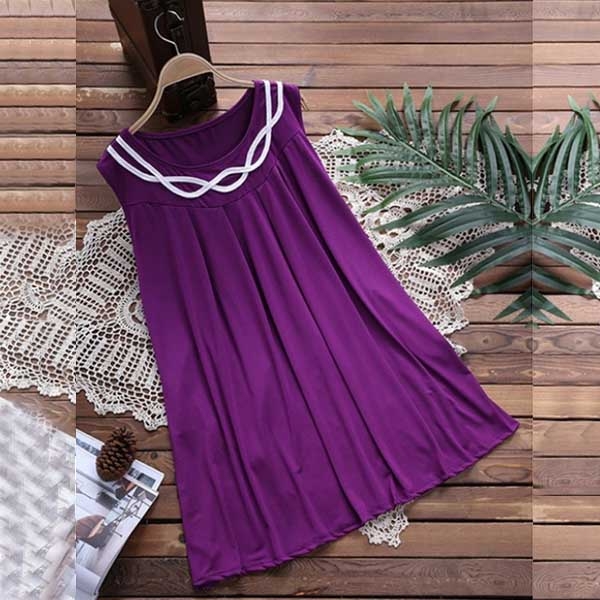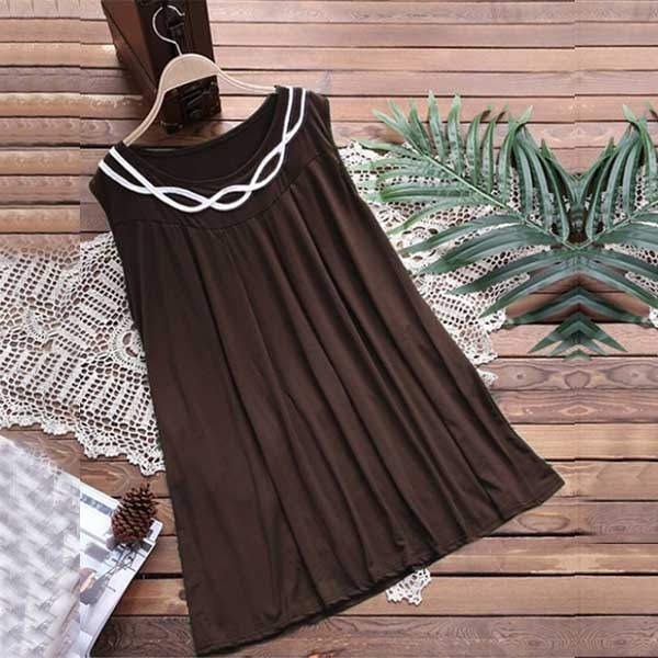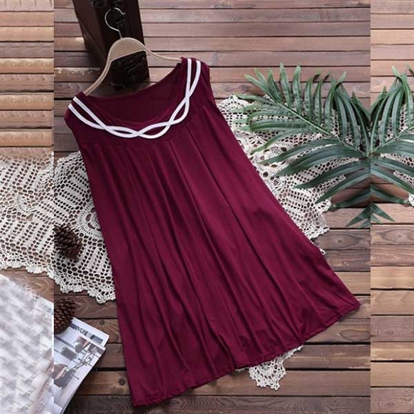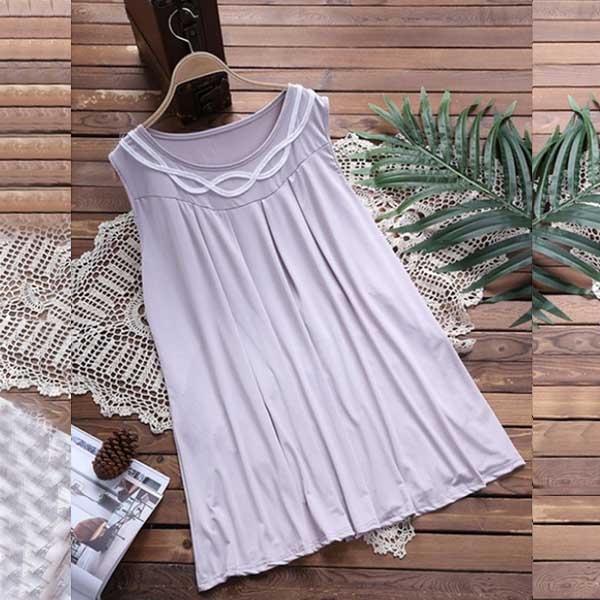 a solid color,simple yet generous. Finished with sleeveless,round neck and a loose silhouette,