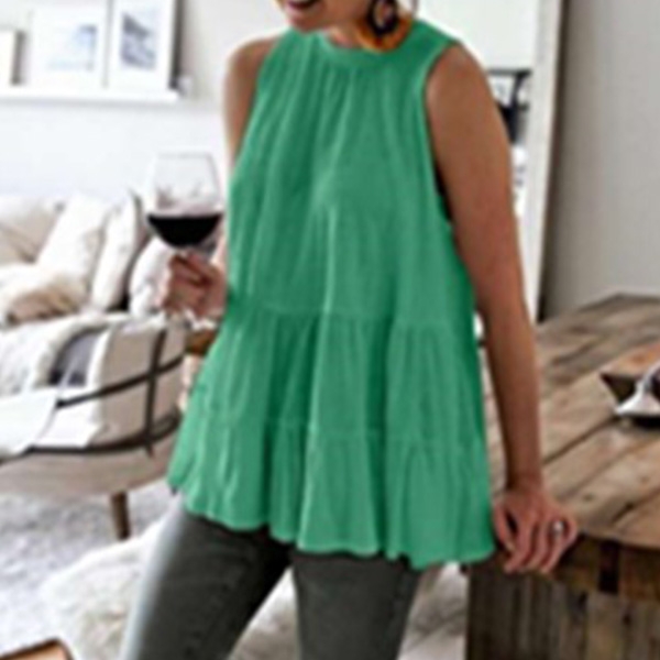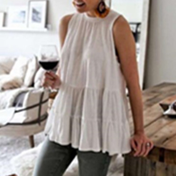 Fashion Solid Color Sleeveless Round Neck Loose Top