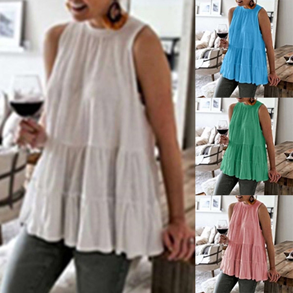 You will fall in love with this pretty top at the first sight.It is finished with round neck and sleeveless