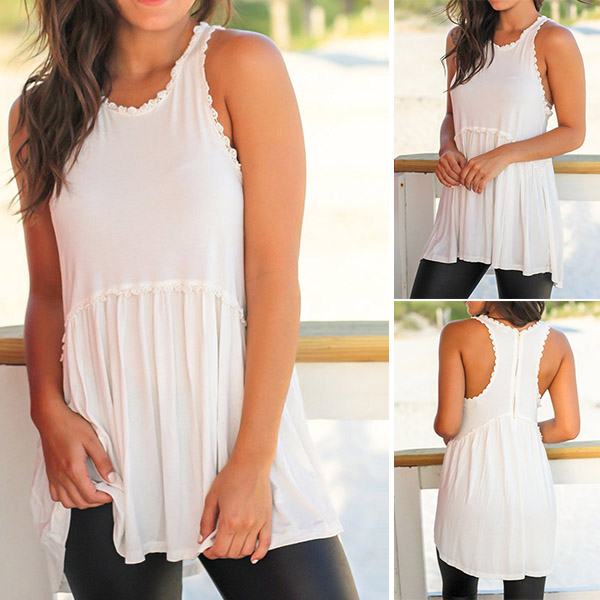 Fashion Solid Color Sleeveless Round Neck Loose Top
