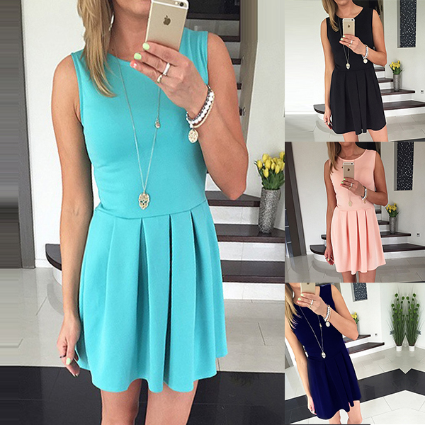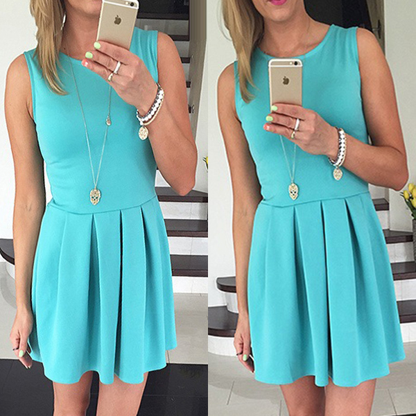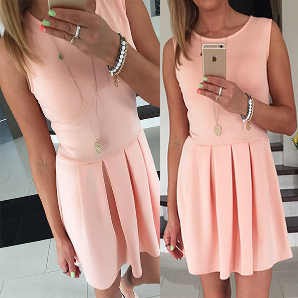 Fashion Solid Color Sleeveless Round Neck Pleated Hem Dress