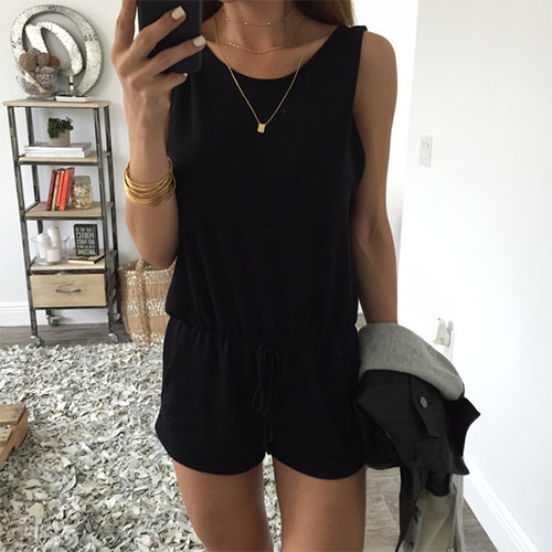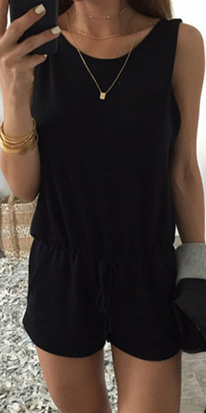 Effortless in design,this romper boasts a solid color,with sleeveless,round neck and a