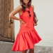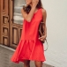 then you can look fashionable enough! It comes with a solid color,with sleeveless,round neck and ruffle hem,