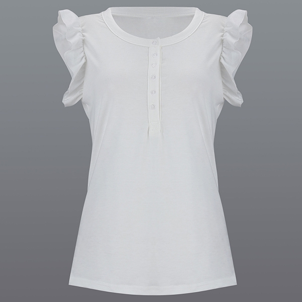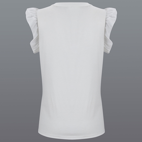 round neck and a clean silhouette,this t-shirt boasts a simple design style,but its ruffle details can