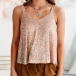 You style can have an instant boost when you wear this t-shirt. Solid color style,designed with sleeveless,round neck and a loose silhouette,this piece is sure to give you a comfortable day. Moreover,the sequin spliced design will further enhance its charm. Matching with your high waist tight pants would be a good choice.