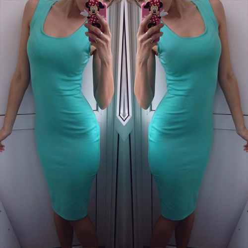 dress! Solid color style,with sleeveless,round neck and a super fit silhouette,this dress can provide