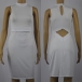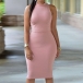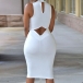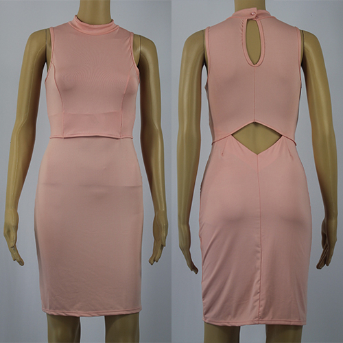with sleeveless,round neck,backside hollow out and a fit silhouette makes this dress look so delicate