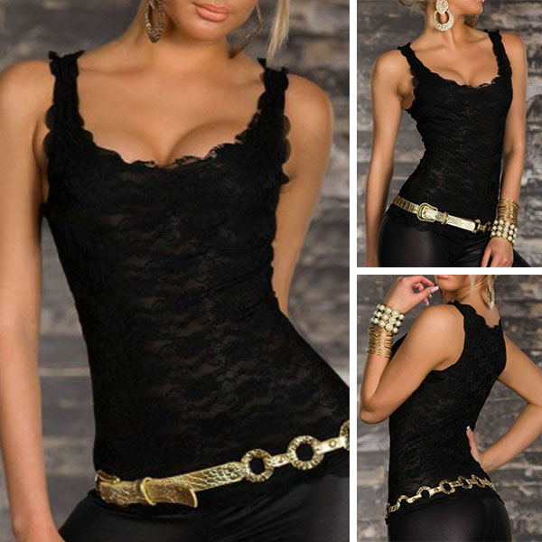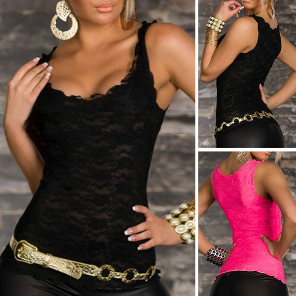 Solid color style,outfitted with sleeveless,round neck and a clean and fit silhouette,this lace top can give you different fashion