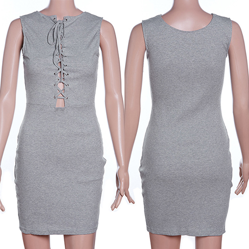 individuality. Solid color style,designed with sleeeless,round neck and a fit silhouette,and its lace-up design makes this