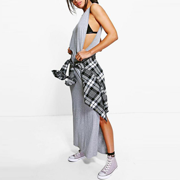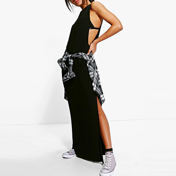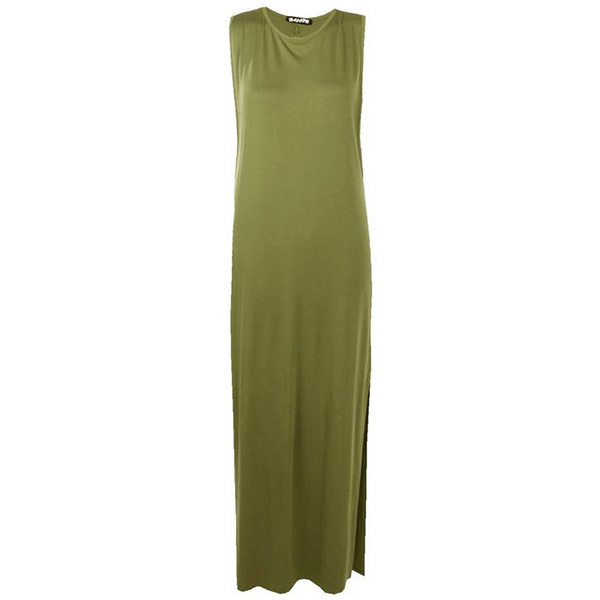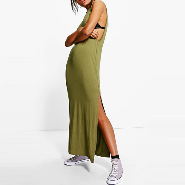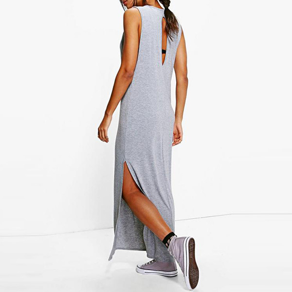sleeveless,round neck,slit hem and a maxi length,this dress is sure to give you a comfortable day with its soft and breathable