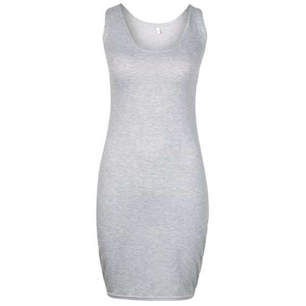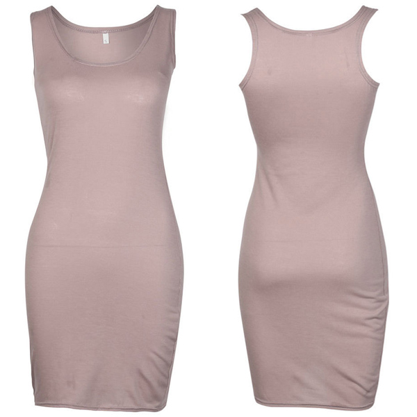 dress is a good example. It is styled with solid color,sleeveless,round neck and a fit silhouette,this