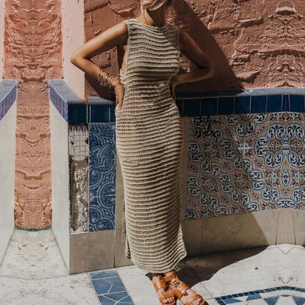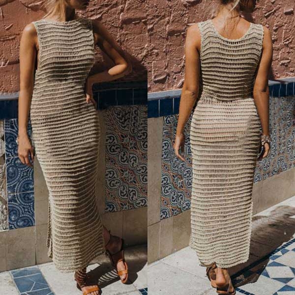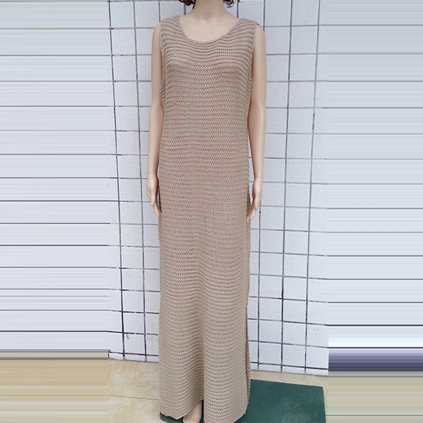 creation. This sweater dress comes with a solid color,with sleeveless,round neck,slit hem and a