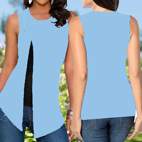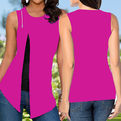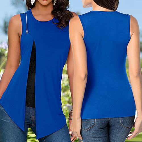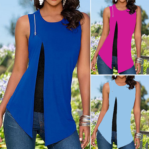 wardrobe ensemble. Solid color style,with sleeveless,round neck and irregular slit hem design,this