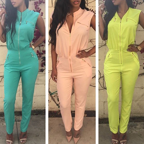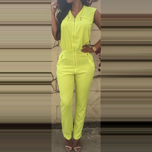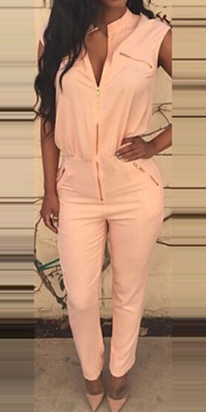 With this sleeveless jumpsuit,you can show your chic style. Solid color style,with sleeveless and