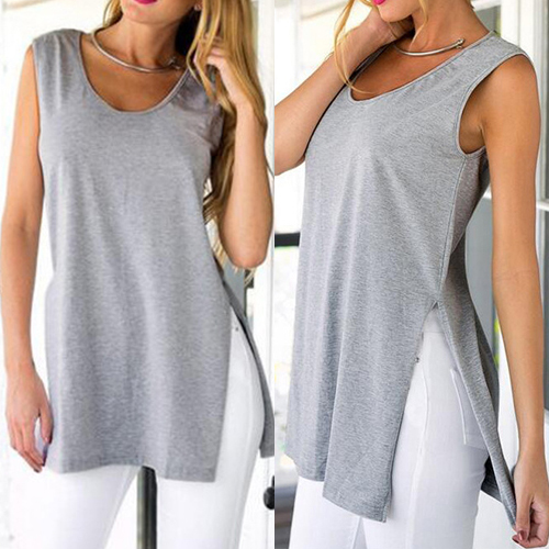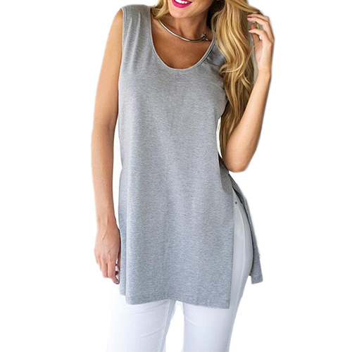 Solid color style,with sleeveless,round neck,slit hem and skin-friendly fabric,this t-shirt features casual,chic,cozy and stylish elements all in one.