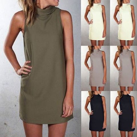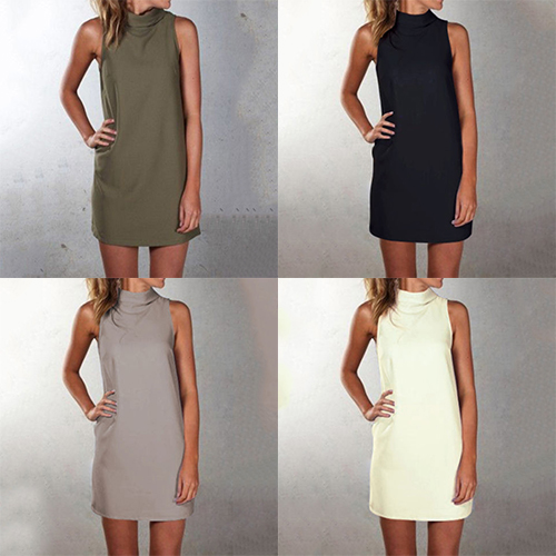 Hey,girls,add this simple but stylish dress to your closet! It features solid color style,with sleeveless