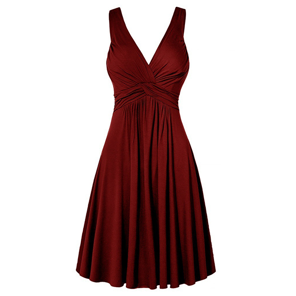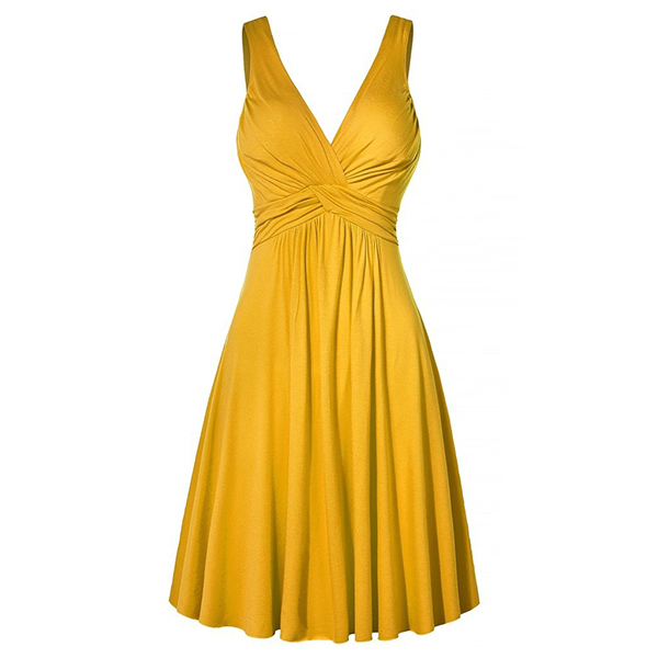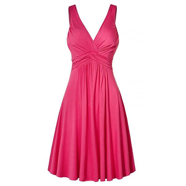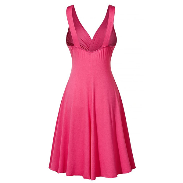 Fashion Solid Color Sleeveless V-neck Beach Dress