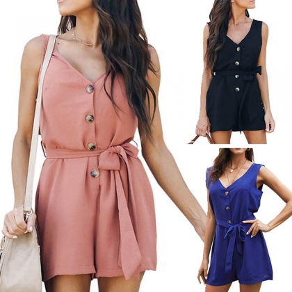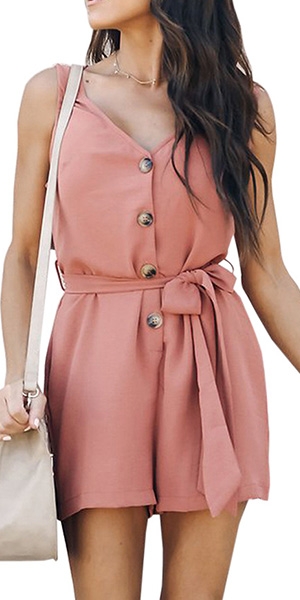 this romper. Solid color style,outfitted with sleeveless,v-neck