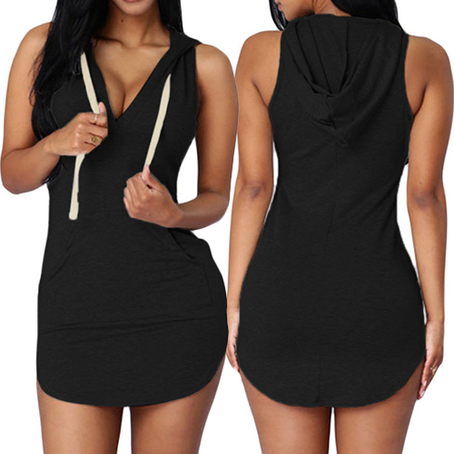 sleeveless,hooded,v-neckline and a fit silhouette,this laid-back yet sophisticated dress is here to liven up