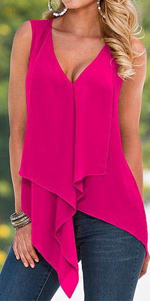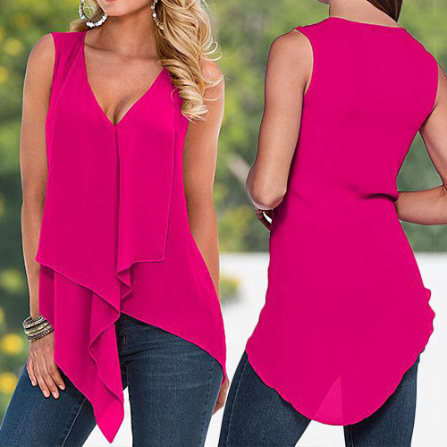 Solid color style,designed with sleeveless,v-neckline and an irregular hem,unique,sexy