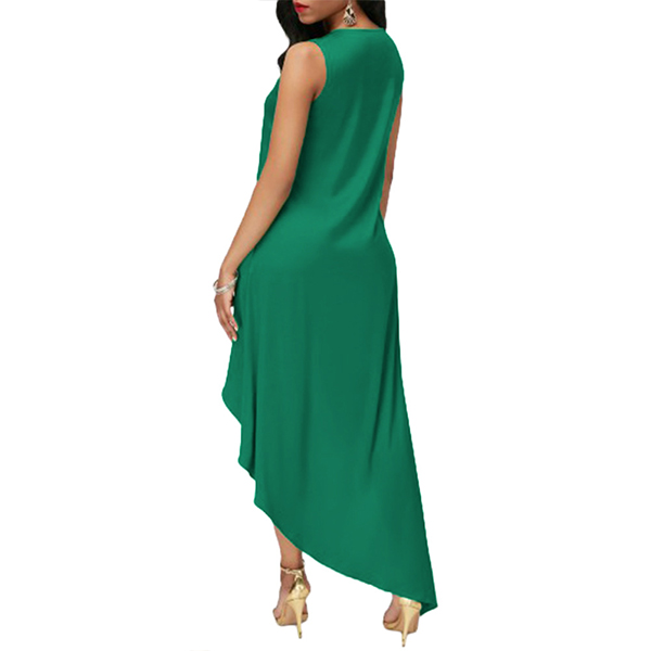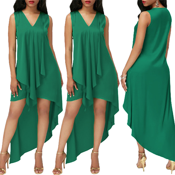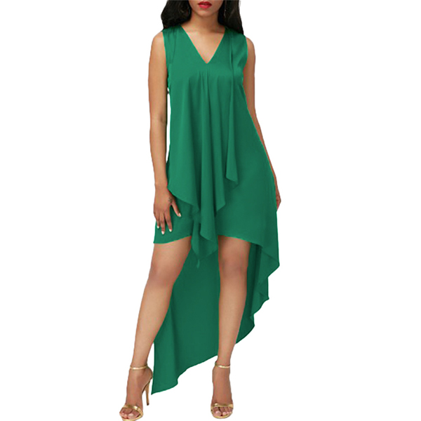 Designed with sleeveless,v-neck and an irregular hem,this dress can easily make you be a trendsetter! Dress it up with