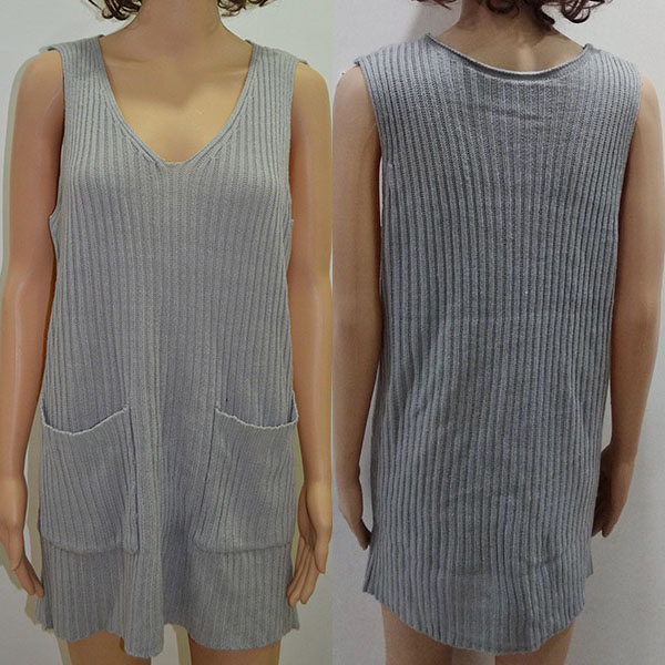 This knit dress features a solid color,finished with sleeveless,v-neck and front pockets design,which can