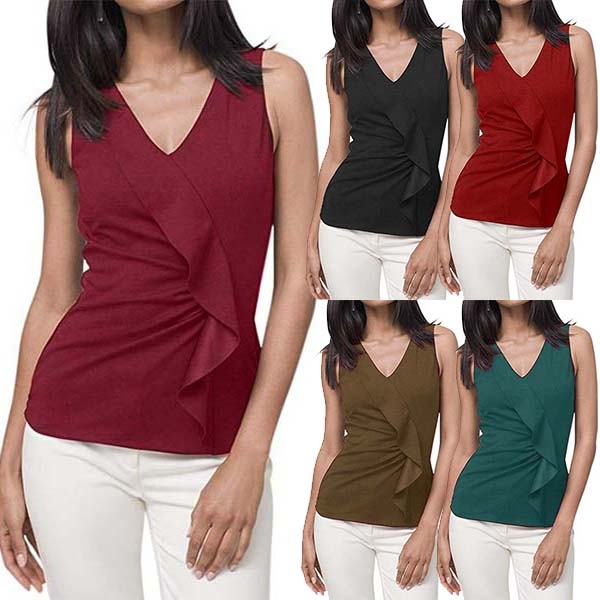 To greet these summer days,this tank top is suit for you.It comes with a solid color style,v-neck and