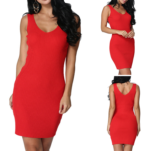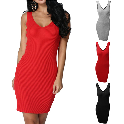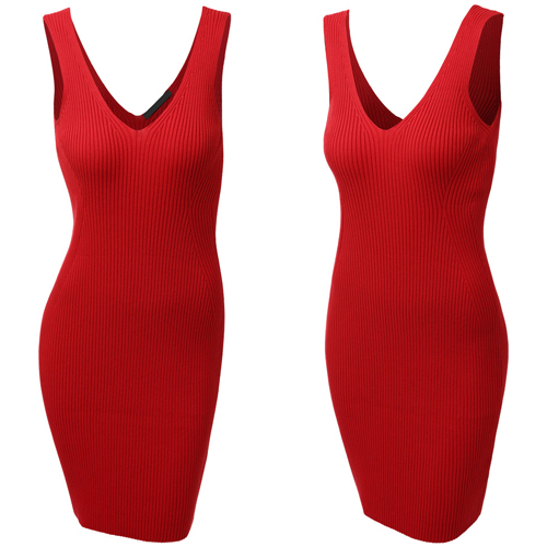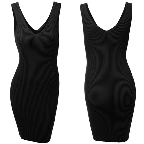 For example this knit dress. Solid color style,designed with sleeveless,v-neck and a super fit silhouette,this dress