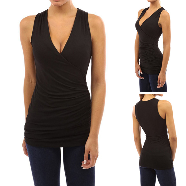 Wanna a simple yet cozy style,then slip into this t-shirt. It features a solid color,accompanied with sleeveless,