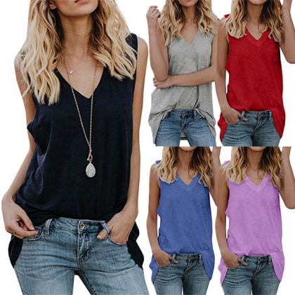 This tank top comes with a solid color,crafted from soft and breathable fabric,with sleeveless and v-neck design,