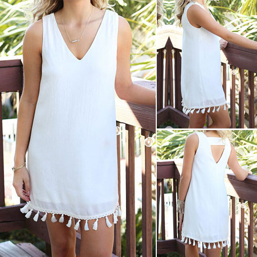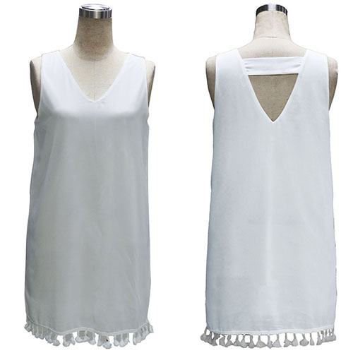 with sleeveless,v-neck and tassel hem design makes it look so chic and feminine. While its