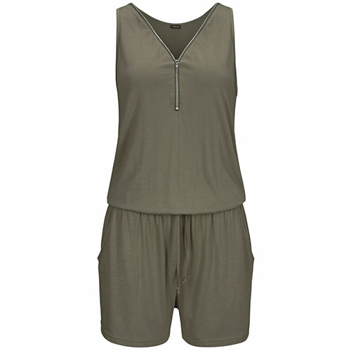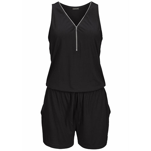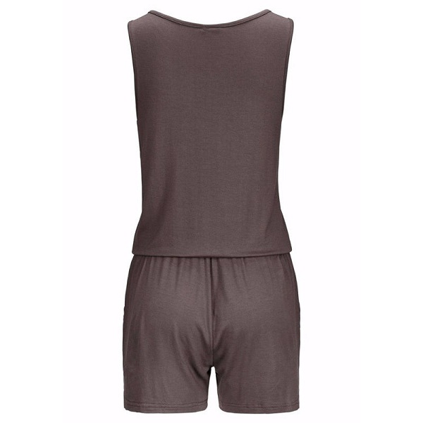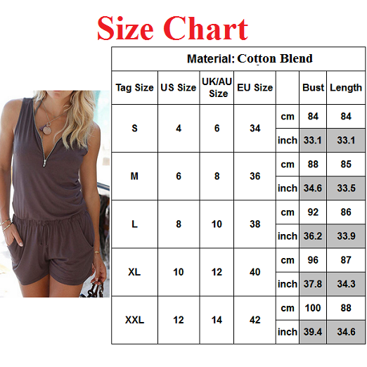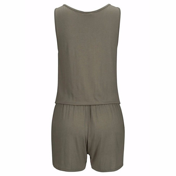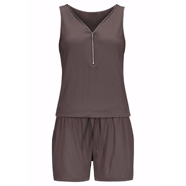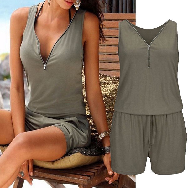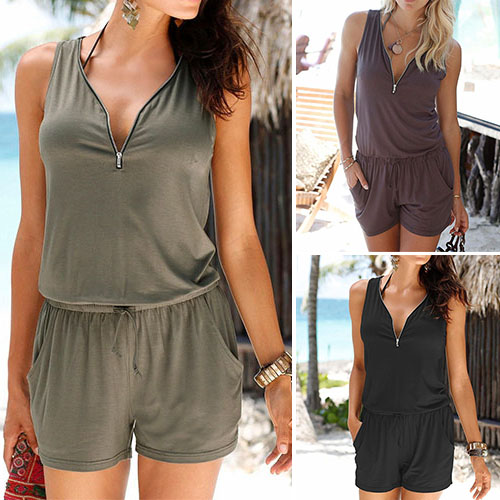 Solid color style,designed with sleeveless,zipper v-neckline,elastic waist and soft fabric,this romper can give