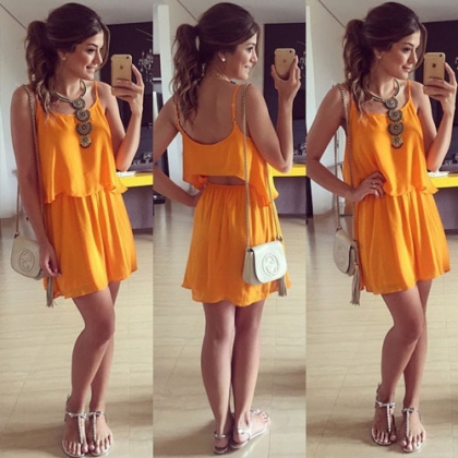 Solid color style and two-piece design,you would look stylish and graceful in this two-piece