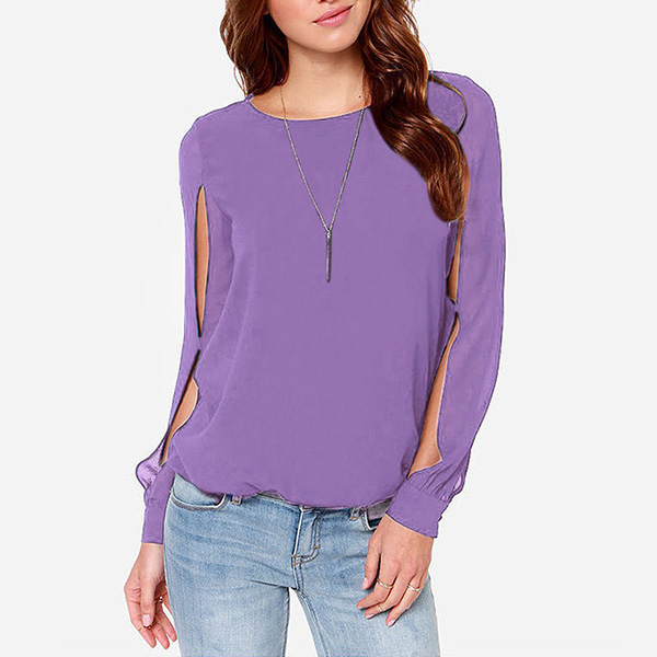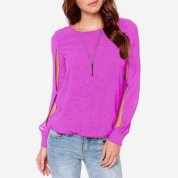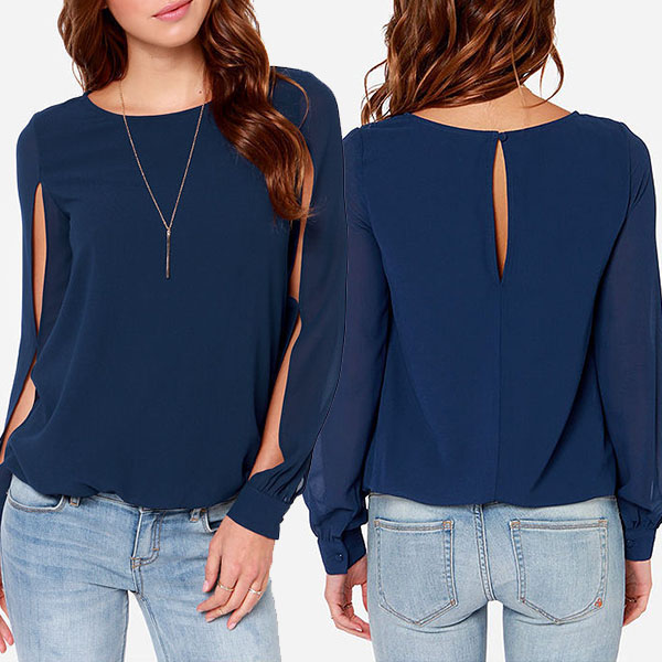 Only need one glance,you would be attracted by this chic and sexy chiffon blouse. It comes with a solid color,