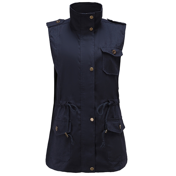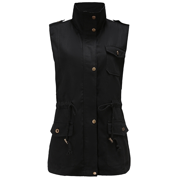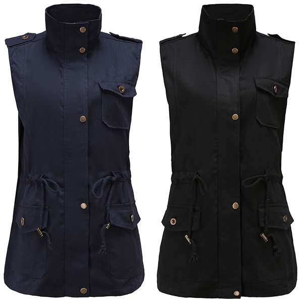 with sleeveless,stand collar and a fit silhouette,simple yet stylish. The drawstring waist design can