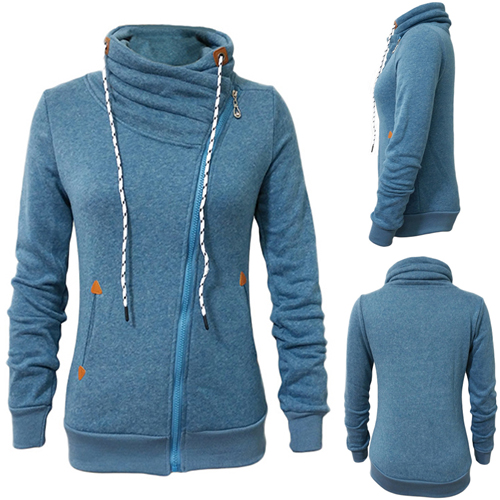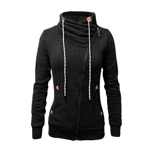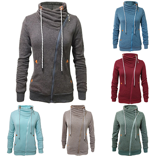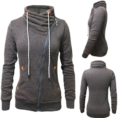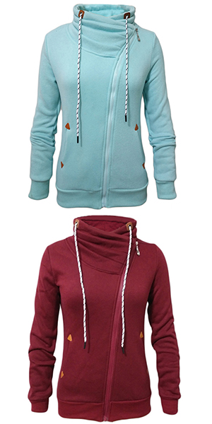 Chic oblique zipper design, equipped with stand collar and long sleeve, trendy and warm. Even if the