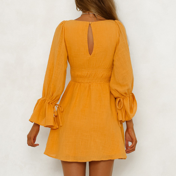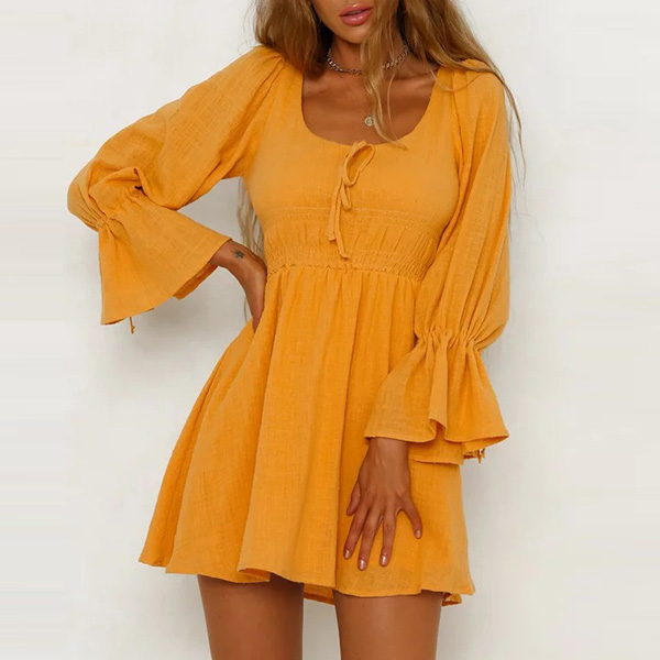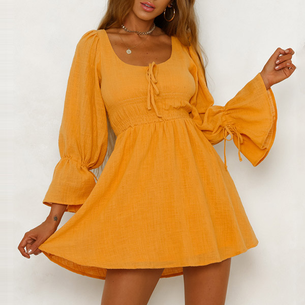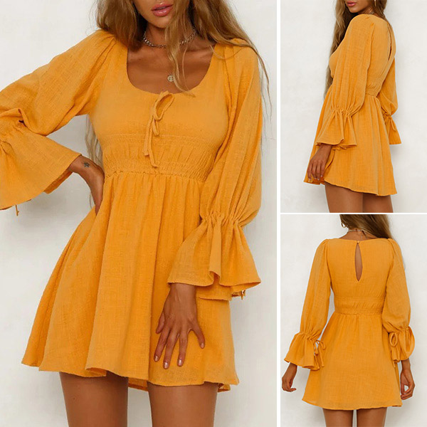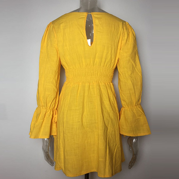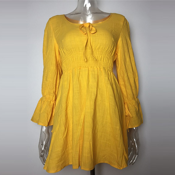This dress comes with a bright yellow tone,which can better highlight your fair skin. The elastic waist