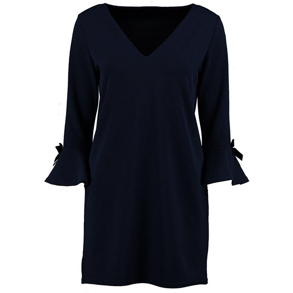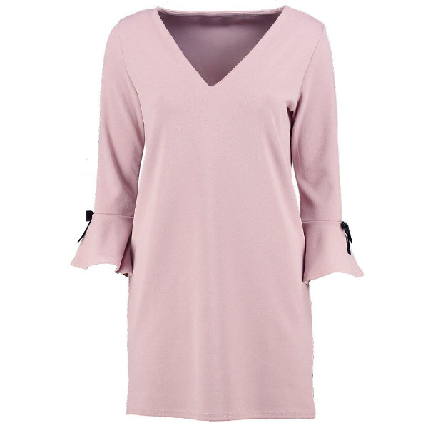 Your image would have an instant boost when you slip into this dress. Solid color style,outfitted with trumpet sleeve,v-neck and