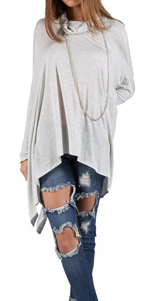 a loose silhouette,which can give you an all-day comfort. Outfitted with dolman sleeves,turtleneck