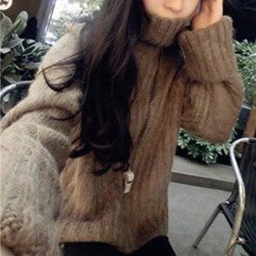 Fashion Solid Color Turtleneck Long Sleeve High-low Hemline Relaxed Sweater