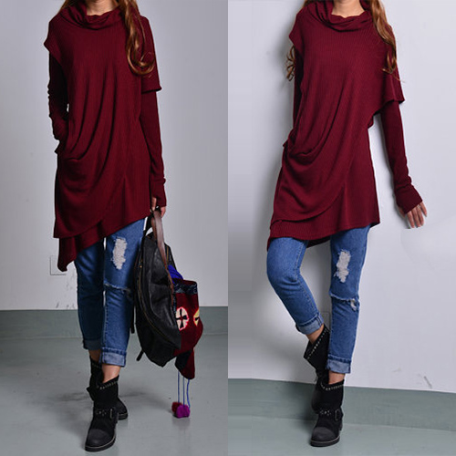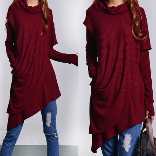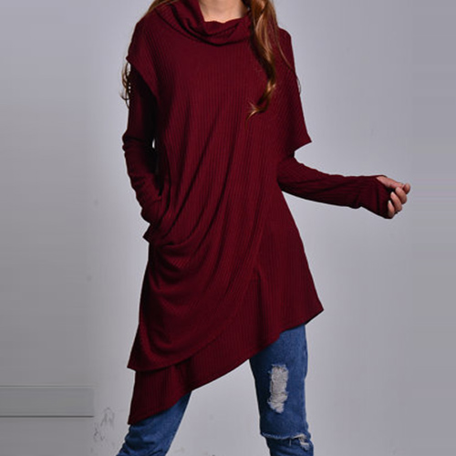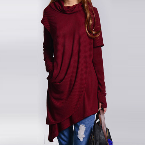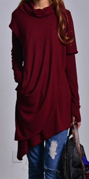 The dress is special and stylish. It is decorated with solid color and turtleneck long sleeve design, the irregular