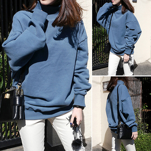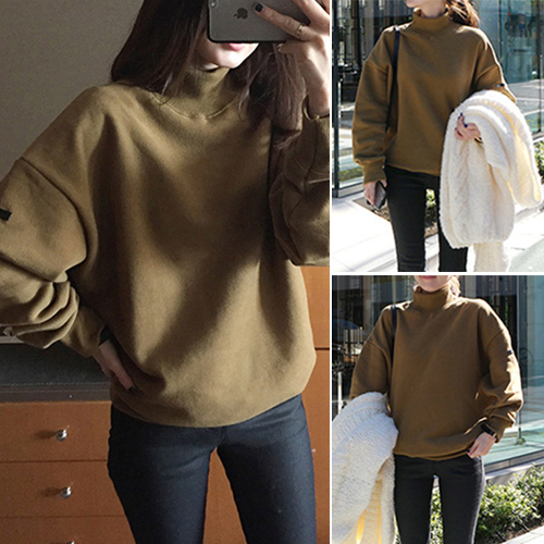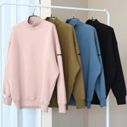 Solid color style, equipped with turtleneck, long sleeve and loose silhouette design, this piece keeps your